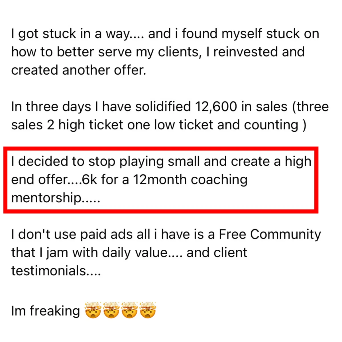 All results stated above are not typical, I’m not implying you’ll duplicate them (or do anything for that matter). Any of my strategies and case studies are only estimates of what is possible. There is no assurance you’ll do as well or even close to as well as I have done or other clients. Results are based on many factors including consistency, hard work and effort. We have no way of knowing how well you will do, as we do not know you, your background, or your work ethic etc. Therefore, we do not guarantee or imply that you will get better results or that you will do as well, especially if the techniques are never implemented.